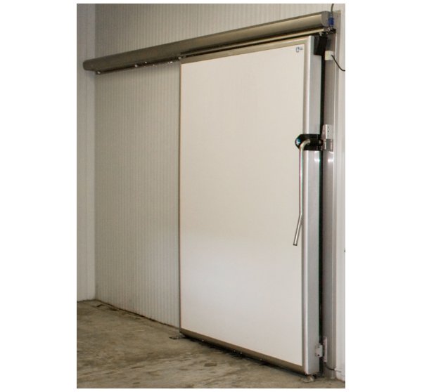La puerta frigorífica corredera permite una apertura sencilla con una sola mano por el diseño de la maneta. Estas puertas en las cámaras frigoríficas de conservación no tienen resistencia y en las cámaras frigoríficas de congelación si que ofrece resistencia en el marco.