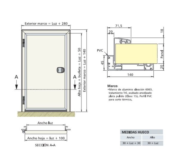 Las puertas frigoríficas pivotantes se fabrican con los siguientes elementos: